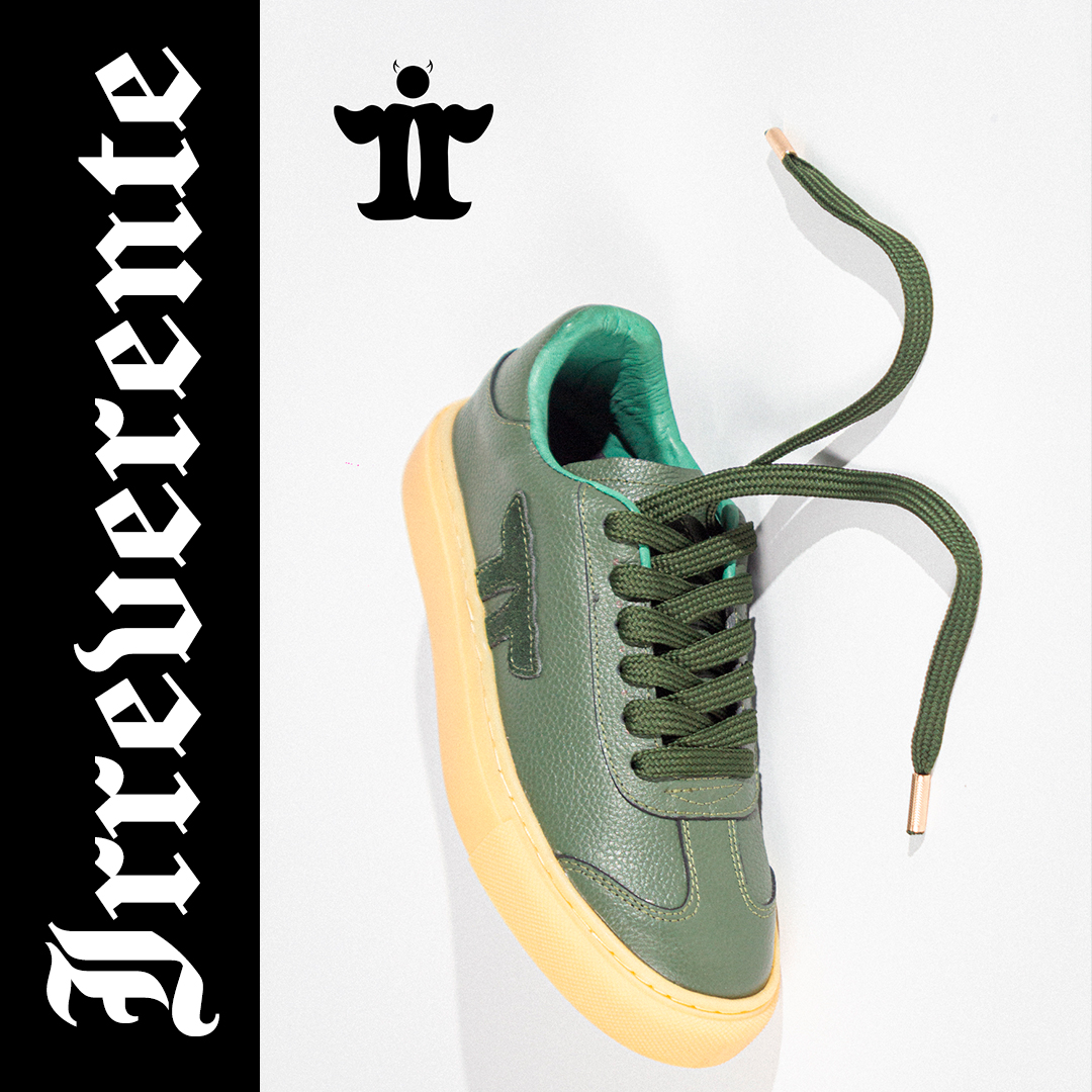 Los Irreverentes Oliva se inspiran en las nuevas tendencias combinando cuero seleccionado de tonalidad verde con una suela de caucho antideslizante amarillo.